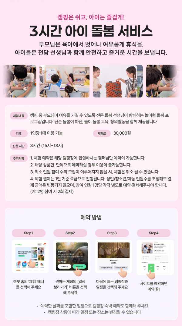- 체험예약은 해당 캠핌장(캠핑, 카라반,리조트)의 숙박예약을 완료한